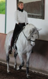 Invited to train in Europe, she studied under the principle riders of the Portuguese School of Equestrian Art, riding day & night, honing her high level dressage movements on schoolmasters stallions, then began training the young stallions and ‘problem’ horses.